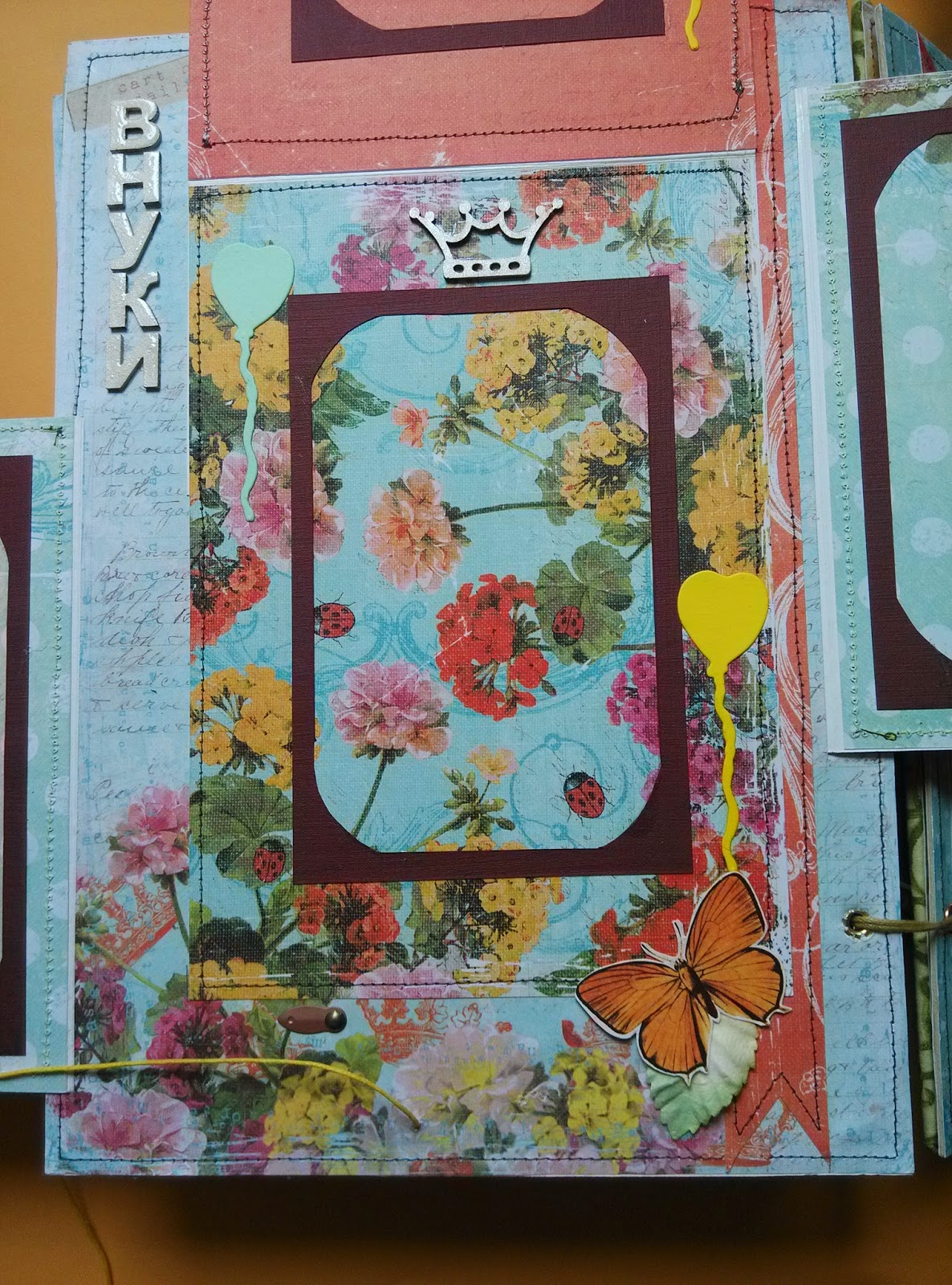 Вот сам альбом. Состоит из 5 разворотов и вмещает 51 фото. Развороты тематические: семья (фото родителей и фамильное древо), разворот о родителях, о детях, о внуках и отдельный разворот об отдыхе на любимой маминой даче)